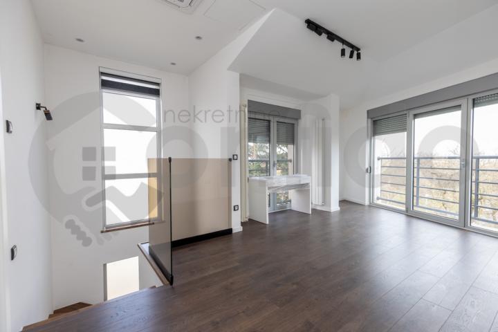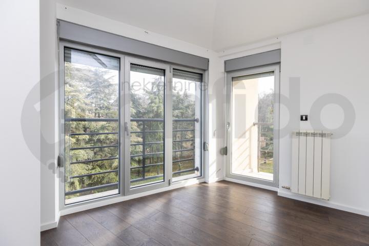 Lociran u kompleksu kuća u nizu, sa pristupom ograničenim rampom, okružen zelenilom, odnosno šumom Košutnjaka, ovaj stan predstavlja jedinstven spoj luksuza, komfora, idiličnog ambijenta i pogleda koji oduzima dah.