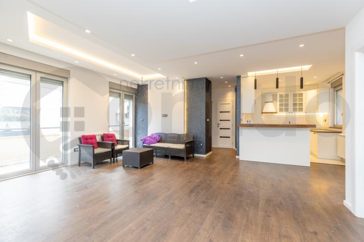 Na prodaju je jedinstven penthouse u modernoj i kvalitetno građenoj zgradi sa četiri sprata, koja se izdvaja svojom ozbiljnošću, pažljivo odabranim stanovima i luksuznim karakterom. Stan je upisan u katastar na 165 m² i vodi se kao četvorosoban, dok je grejna površina 105 m². Dve terase ukupno imaju 60 m² – jedna je zastakljena i pogodna za korišćenje tokom cele godine, dok je druga otvorena, idealna za letnje uživanje, stvarajući funkcionalan i udoban prostor za različite prilike. Nijedna terasa nije iste veličine, što dodatno doprinosi jedinstvenom osećaju prostora.