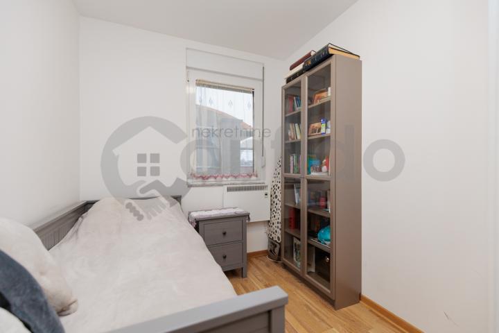 Stan je uknjižen na 76 m², dok ukupna površina iznosi oko 90 m². Sastoji se od prostranog dnevnog boravka sa trpezarijom i kuhinjom, dve komforne spavaće sobe i kupatila. Stan je svetao, uredan i odmah useljiv.