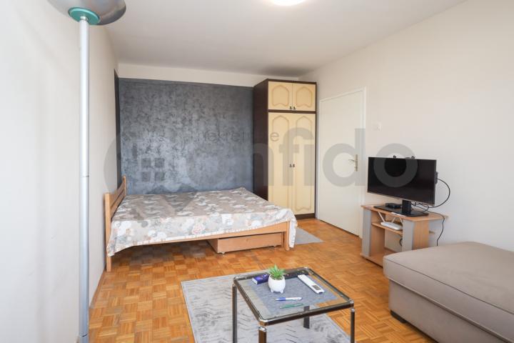 Na prodaju jednosoban stan površine 35 m², nalazi se na 5. spratu od ukupno 10, u vojnoj zgradi sa dva lifta, izgrađenoj tokom osamdesetih godina. Zgrada je uredna i redovno održavana, sa centralnim grejanjem i čistim ulazom.