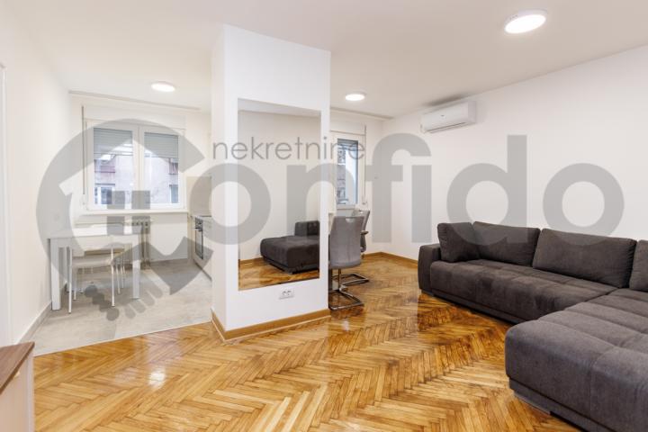 Stan je na II spratu, poseduje 2 ulaza, 3 prostrane kancelarije + jednu manju (trenuno u funkciji spavaće sobe), odvojenu kuhinju, ostavu i zastakljenu lođu. Renoviran, promenjena spoljna stolarija, fasada na zgradi skoro obnavljana sa novom izolacijom. Etažno grejanje na struju, mali komunalni troškovi. Odmah useljiv uz obavezan depozit u iznosu jedne mesečne zakupnine. Agencijska provizija - 50% mesečne zakupnine.