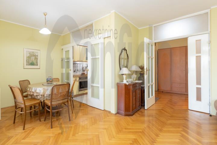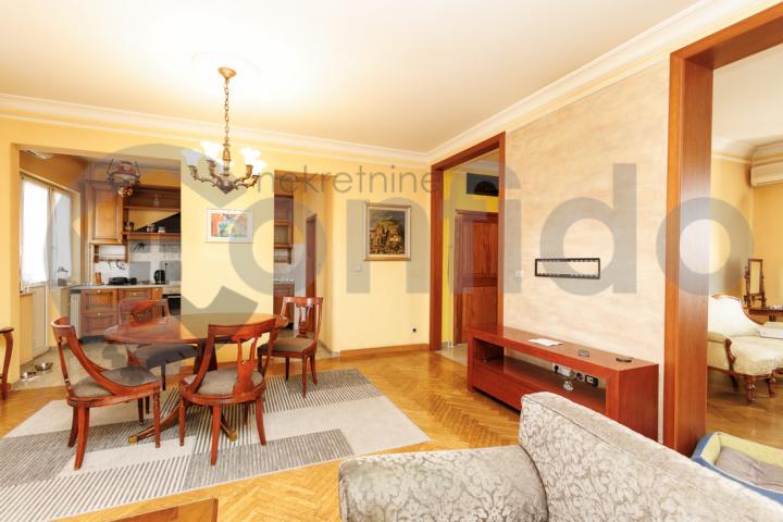 Na jednoj od najtraženijih lokacija u Beogradu, u mirnom i prestižnom delu Vračara, na samo korak od Kalenić pijace, izdaje se izuzetno lep, prostran stan od 117 m², koji odiše elegancijom i autentičnim beogradskim šarmom, sa visokim plafonima, velikim svetlim prostorijama i pažljivo biranim detaljima koji stvaraju osećaj topline i sofisticiranosti. Impozantan dnevni boravak ispunjen prirodnim svetlom. Tri komforne spavaće sobe. Posebna trpezarija idealna za porodična i poslovna okupljanja. Funkcionalna kuhinja. Dva moderno opremljena kupatila. Šarmantna, mala terasa — savršena za jutarnju kafu ili večernji predah.
