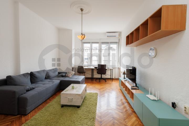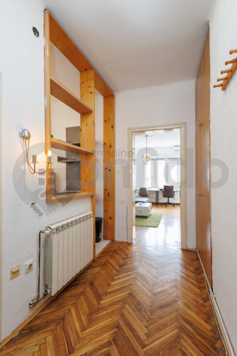 Stan se izdaje potpuno namešten — sa ukusno uklopljenim nameštajem visokog kvaliteta, ali postoji i opcija pražnjenja prostora, u zavisnosti od vaših potreba. Zahvaljujući izuzetno funkcionalnom rasporedu, stan je podjednako pogodan kako za porodični život, tako i za poslovni prostor — kancelarije, advokatske, IT agencije, kreativne studije ili predstavništva. Kvalitetna i očuvana zgrada sa karakterom. Stan je odmah useljiv.