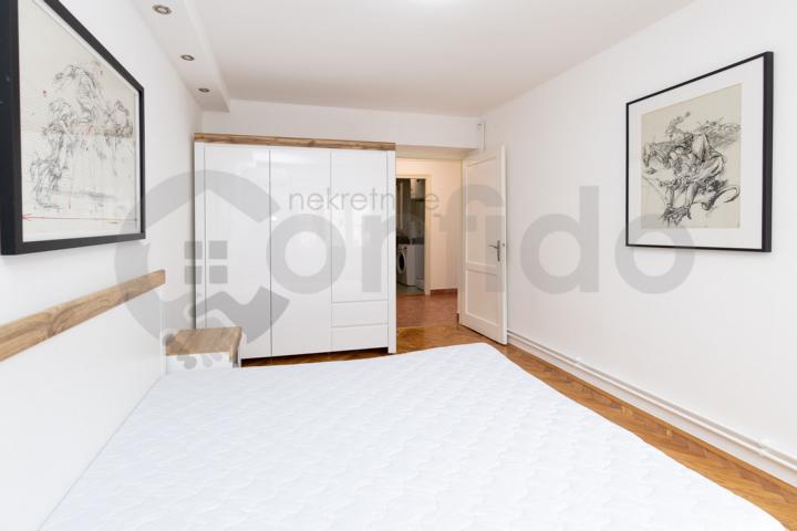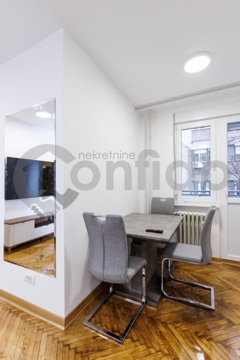 Stan je temeljno renoviran, sa pažljivo biranim materijalima i potpuno novim, modernim nameštajem. Sastoji se od komfornog dnevnog boravka sa trpezarijom, odvojene spavaće sobe, funkcionalne kuhinje, kupatila i hodnika. Prostor je svetao, prijatan i izuzetno dobro organizovan.